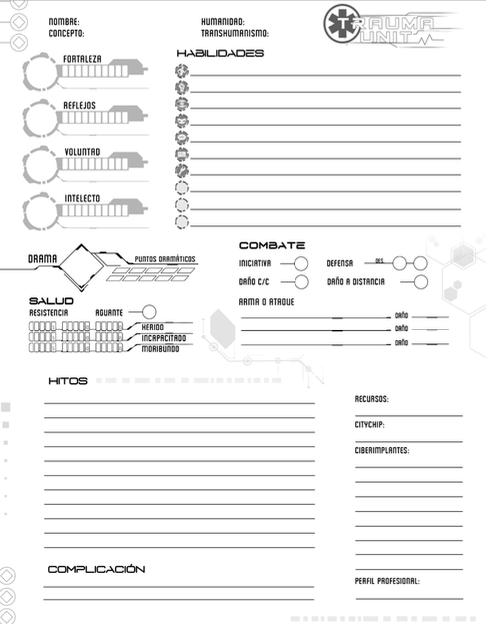 Hoja de personaje para Trauma Unit, ByN (oficial, 2018) Obtener enlace Facebook X Pinterest Correo electrónico Otras aplicaciones De CiberPriest - octubre 06, 2020 ENLACE Obtener enlace Facebook X Pinterest Correo electrónico Otras aplicaciones Comentarios